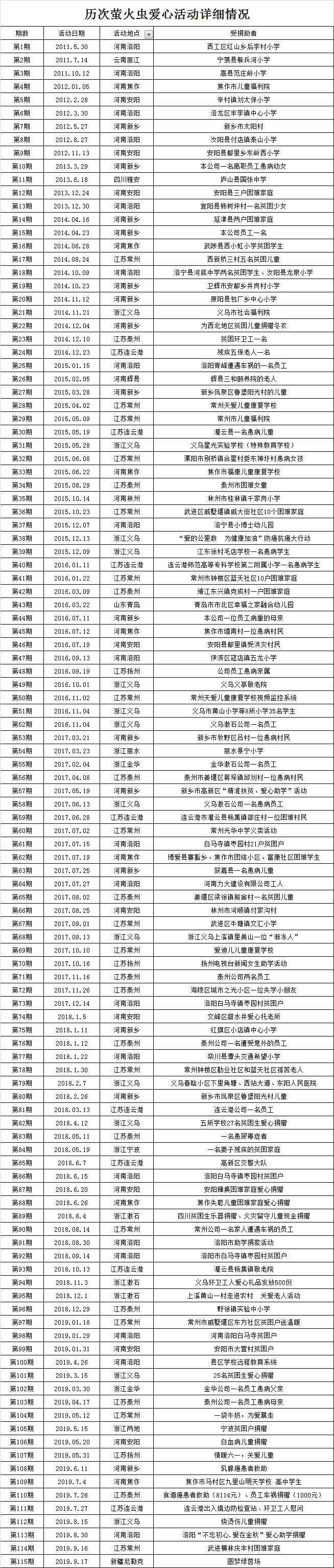 以下為歷次螢火蟲愛心活動(dòng)捐贈(zèng)明細(xì):